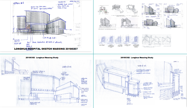 由于場地條件苛刻,設(shè)計難度高,項目設(shè)計團(tuán)隊從設(shè)計初期便全程引用BIM軟件,對場地關(guān)系、空間尺度、可實施性等方面均進(jìn)行強有力的把控,同時在立面關(guān)系、體塊穿插比例等方面,通過手繪草圖及實體模型等方式進(jìn)行精心推敲,從多維度對設(shè)計進(jìn)行把控。