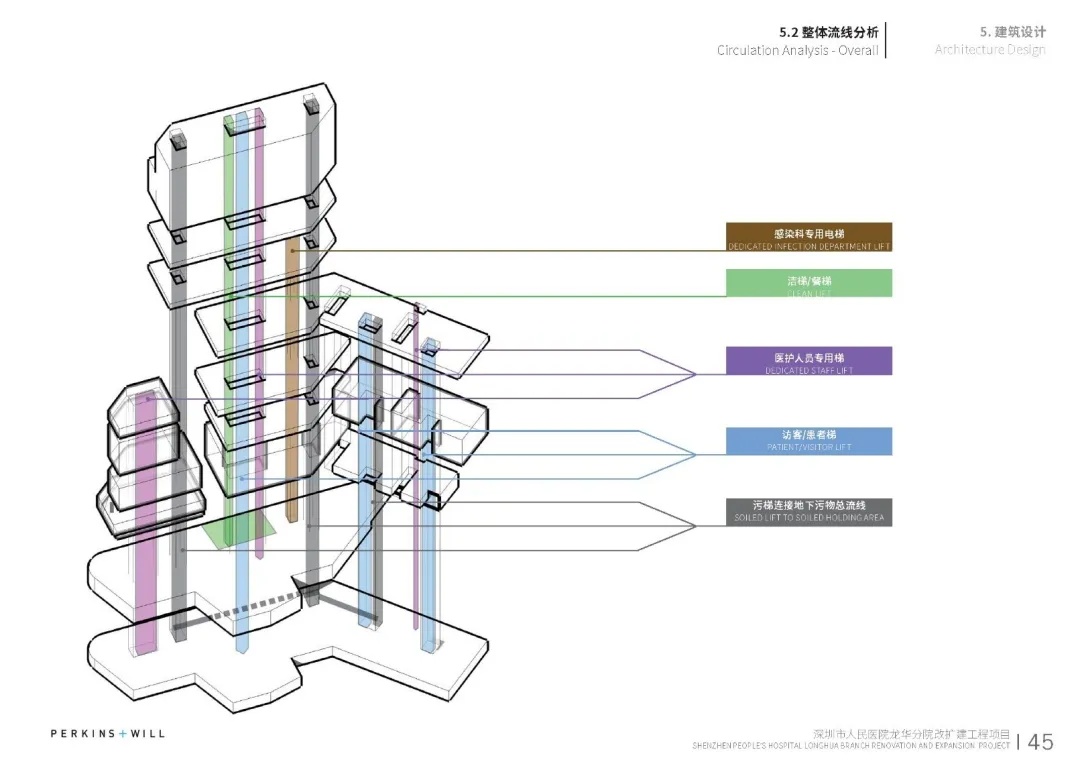 在建筑中通過電梯、物流傳送系統(tǒng)、標(biāo)識設(shè)計、醫(yī)療智能化的專項研究設(shè)計,提升就醫(yī)的便捷性和效率。