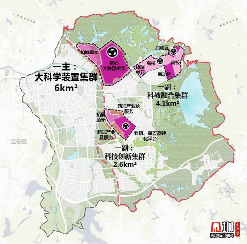 2019年8月18日,國(guó)家發(fā)布了《中共中央國(guó)務(wù)院關(guān)于支持深圳建設(shè)中國(guó)特色社會(huì)主義先行示范區(qū)的意見(jiàn)》,提出以深圳為主陣地建設(shè)綜合性國(guó)家科學(xué)中心。市規(guī)劃和自然資源局地區(qū)規(guī)劃處副處長(zhǎng)葉陽(yáng)介紹,光明科學(xué)城北起深莞邊界,東部和南部以光明區(qū)轄區(qū)為界,西部以龍大高速和東長(zhǎng)路為界,規(guī)劃總面積99平方公里,將構(gòu)建“一主兩副”的科學(xué)裝置集聚區(qū)空間布局。