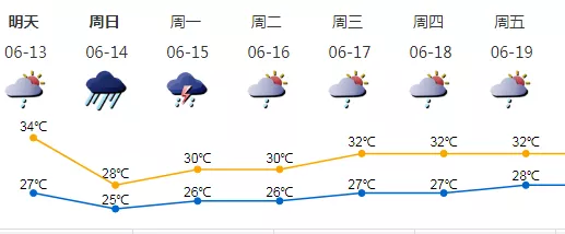 12-13日多云,偶有短時(shí)(雷)陣雨,天氣炎熱;13日夜間-14日有一次明顯風(fēng)雨過程;