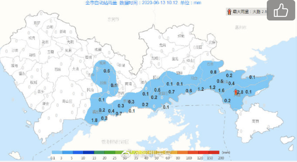 深圳市氣象臺(tái)2020年06月13日16時(shí)56分發(fā)布:預(yù)計(jì)17-20時(shí),全市多云到陰天,有(雷)陣雨;降雨入夜后趨于明顯;偏東到東南風(fēng)4-5級(jí),陣風(fēng)6-8級(jí),風(fēng)力逐漸加大;目前全市雷電預(yù)警信號(hào)和臺(tái)風(fēng)藍(lán)色預(yù)警信號(hào)生效中,外出注意交通行駛安全。