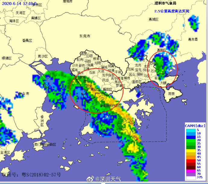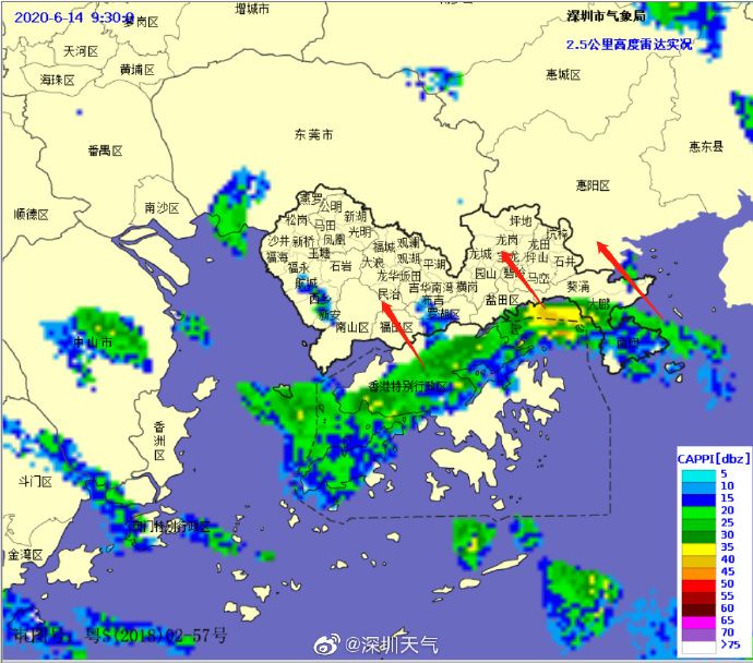 降雨云團(tuán)將自南向北逐漸影響深圳市,外出的小伙伴記得帶傘!