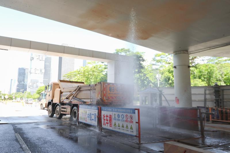相信很多市民朋友對自卸車(俗稱“泥頭車”)的印象就是又吵又臟,對此記者在現(xiàn)場看到,福田區(qū)的工地已經(jīng)用上電動自卸車,跟燒柴油的自卸車相比,不僅節(jié)能環(huán)保,且車子運行的噪音也非常小。不僅如此,為了防止自卸車“帶泥上路”,工地的出口處還設(shè)有車輛自動沖洗系統(tǒng),每輛泥頭車在駛出工地之前,都要經(jīng)歷一次“全身淋浴”,徹底沖干凈車身以及輪胎上的泥土之后才能離開。