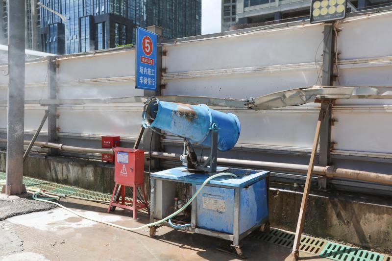 建筑工地可以說是空氣污染和噪音污染的重災(zāi)區(qū)。福田區(qū)空氣環(huán)境和聲環(huán)境質(zhì)量的不斷提高,很大程度上要歸功于福田區(qū)的施工工地抑塵降噪措施做得好。發(fā)布環(huán)節(jié)結(jié)束后,記者一行人來到崗廈北綜合交通樞紐施工現(xiàn)場一探究竟。