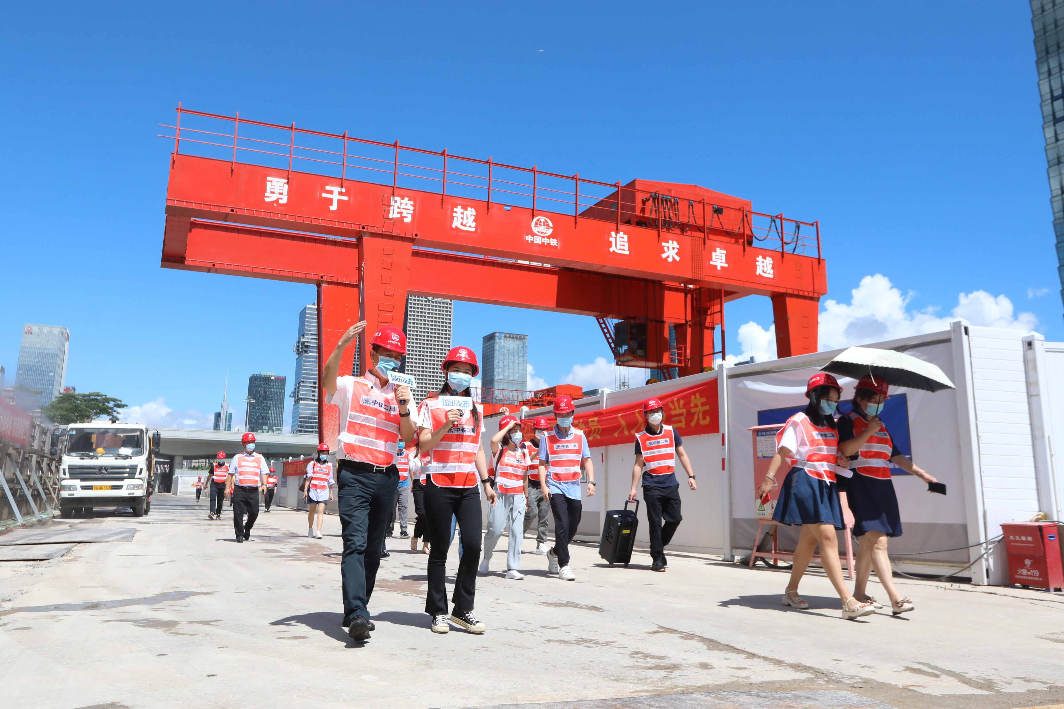 “福田發(fā)布”前往工地現(xiàn)場,近距離認(rèn)識工地抑塵和噪聲防治措施。(攝影:翁正昊)