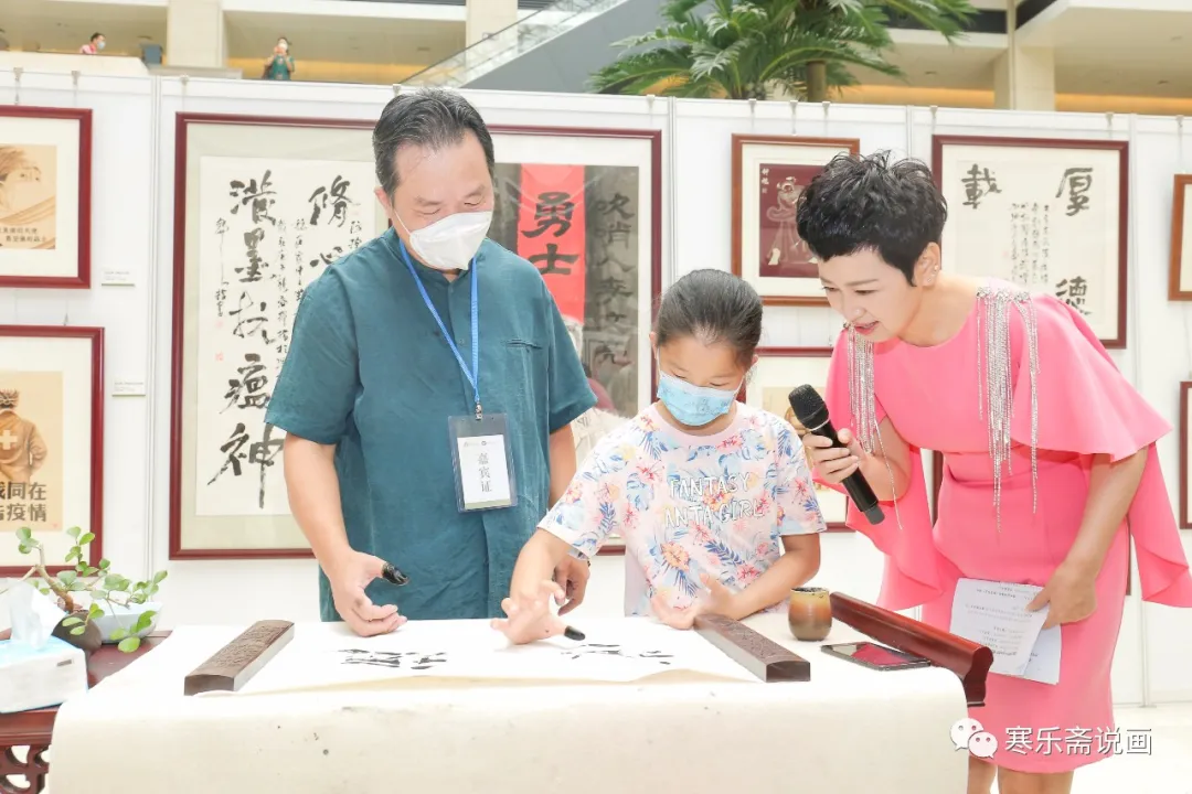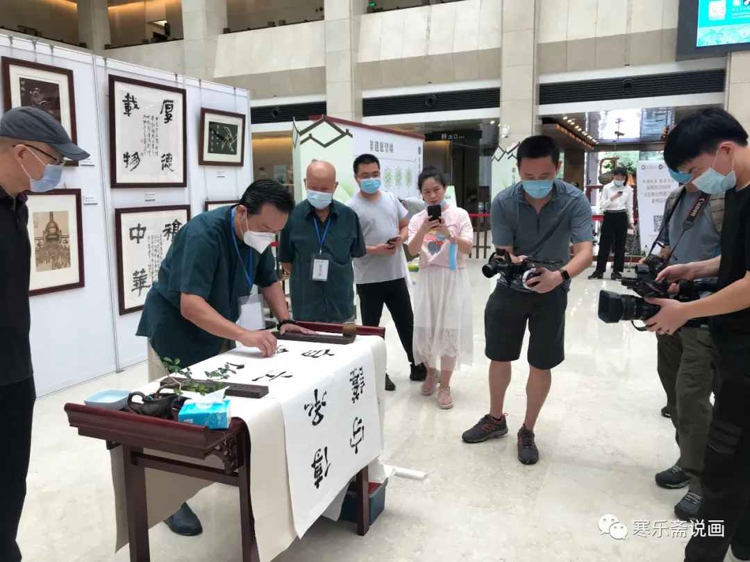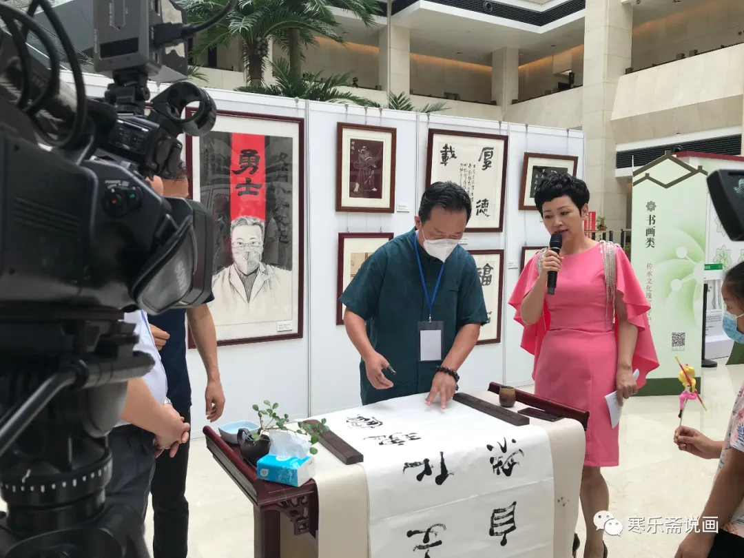 王和平在活動現(xiàn)場揮指書寫“傳承文化瑰寶,守護(hù)自然之家”并接受主持人采訪。
