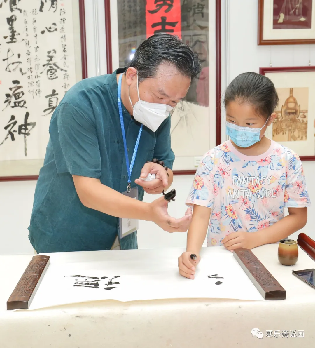 王和平在活動現(xiàn)場教授孩子們用手指寫字的要領(lǐng)。