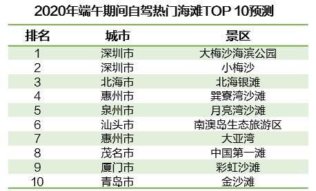 《報(bào)告》預(yù)計(jì),端午期間全國自駕熱門海灘游TOP10主要集中在南部沿海地區(qū),其中珠三角占6席。熱門海灘游中的深圳-大梅沙海濱公園、小梅沙以及北海-北海銀灘,成為全國自駕熱門海灘景區(qū)三甲。