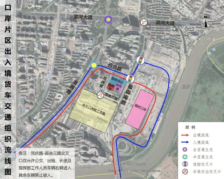 口岸片區(qū)社會(huì)車輛交通組織流線圖