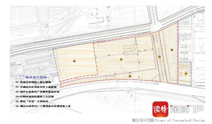 該項目的規(guī)劃范圍總面積約13萬㎡,總建筑面積約3.95萬㎡(其中博物館主體建筑3萬㎡,配套停車場、園林及小型商業(yè)建筑0.95萬㎡),配套景觀面積約9.2萬㎡。博物館主體建筑的建設(shè)場地位于僑城東車輛段上蓋東側(cè)(含東南角的未利用地),上蓋以下的物業(yè)已經(jīng)建成,博物館主體建筑的設(shè)計范圍不涉及上蓋以下空間。