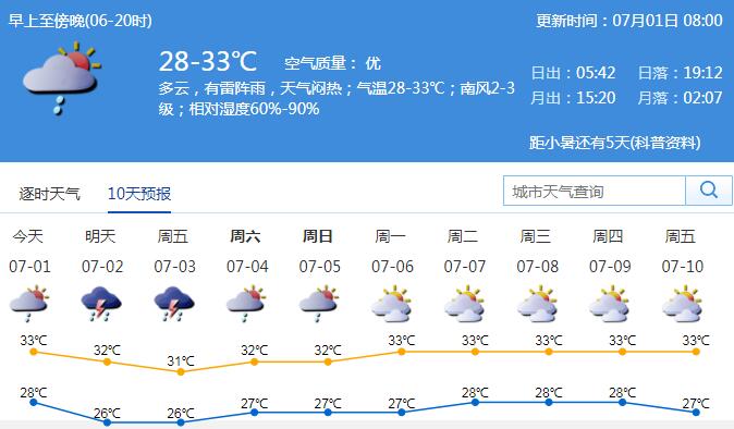 見圳客戶端·深圳新聞網(wǎng)2020年7月1日訊 我市今日晴天間多云,局地有短時(shí)(雷)陣雨;氣溫28-33℃,中北部及人口密集區(qū)最高氣溫可達(dá)35℃以上;偏南風(fēng)2-3級(jí);相對(duì)濕度60%-90%。