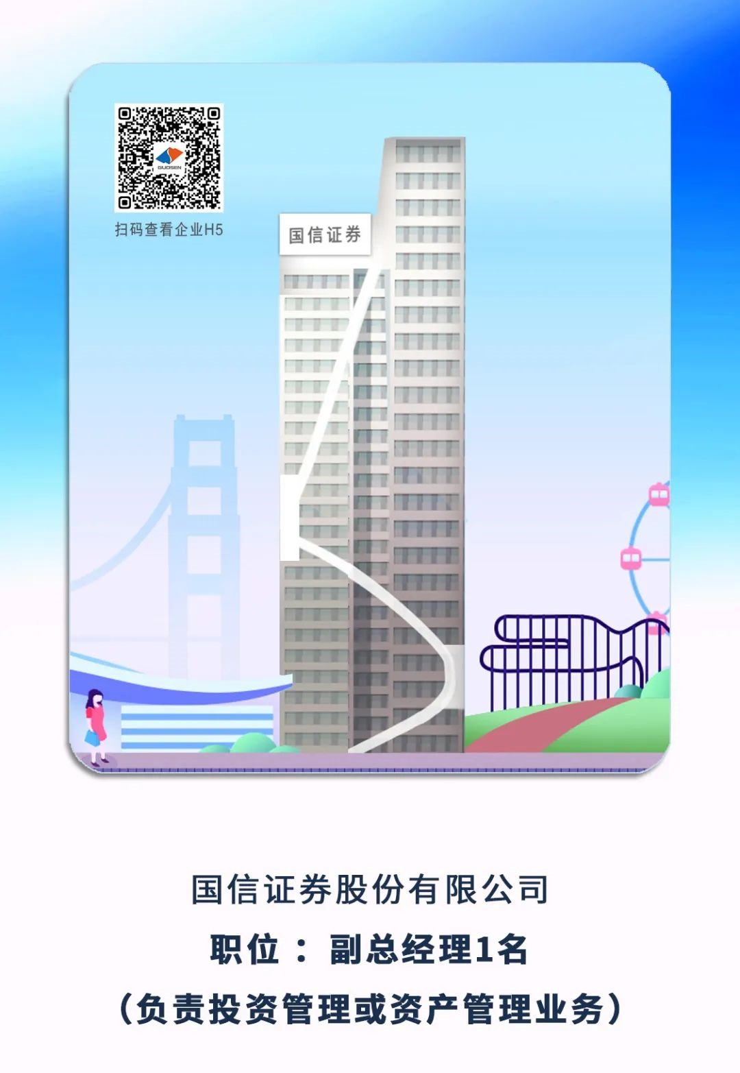 5、國信證券股份有限公司副總經(jīng)理1名(負(fù)責(zé)投資管理或資產(chǎn)管理業(yè)務(wù))