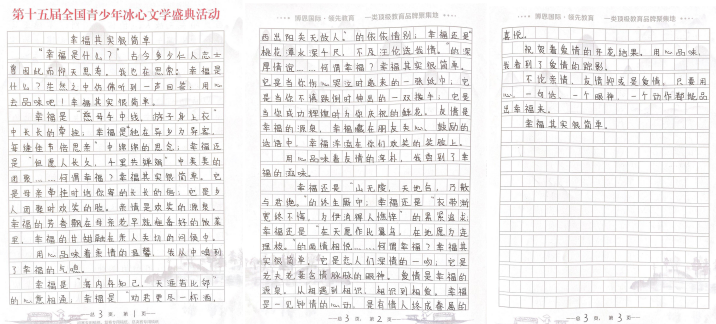 據(jù)活動組委會相關(guān)負(fù)責(zé)人介紹,“第十五屆全國青少年冰心文學(xué)盛典”以“2020文學(xué)之路,向上的力量”為主題,全程公益免費(fèi),設(shè)置了小學(xué)低年級組(1-3年級 )、小學(xué)高年級組(4-6年級 )、初中組、高中組、大學(xué)組、教師組、文學(xué)愛好者組等多個組別。值得注意的是,所有報(bào)名選手必須使用本次活動專用稿紙進(jìn)行書寫創(chuàng)作。組委會將會根據(jù)選手報(bào)名提交的郵寄地址免費(fèi)郵寄活動專用稿紙,每人僅限領(lǐng)取5張。選手完成手寫作品以后,將作品掃描或拍照發(fā)送到全國青少年冰心文學(xué)寫作指導(dǎo)中心深圳組委會指定郵箱szbxwx@126.com(冰心文學(xué)深圳)或gdbxwx@126.com(冰心文學(xué)廣東)。