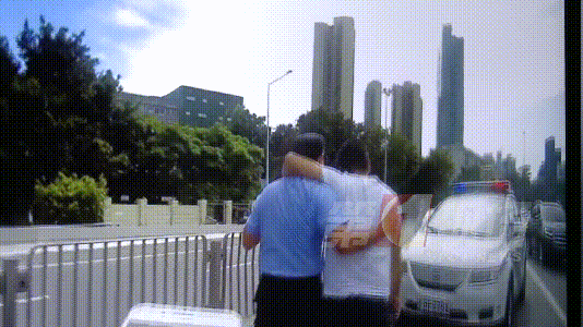 一看情況危急,羅先生馬上報(bào)警,并且一直留守現(xiàn)場(chǎng)照顧。僅僅三分鐘,執(zhí)勤交警馬上到達(dá)了現(xiàn)場(chǎng)。
