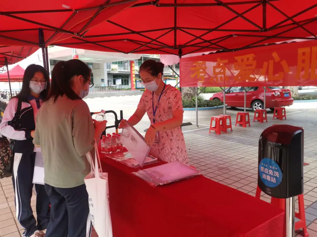在羅湖高級中學(xué),記者看到,在校門口右側(cè),設(shè)置了服務(wù)站,里面為考生準(zhǔn)備了校服、文具、防疫用品、雨傘、紙巾、水等。