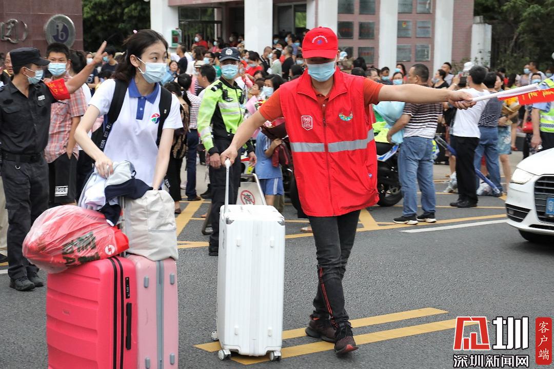 深圳高級(jí)中學(xué)考點(diǎn)外考生腳步輕盈走出考場,有說有笑。