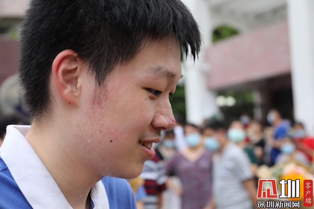 深圳高級(jí)中學(xué)考點(diǎn)外考生自信滿滿走出考場。