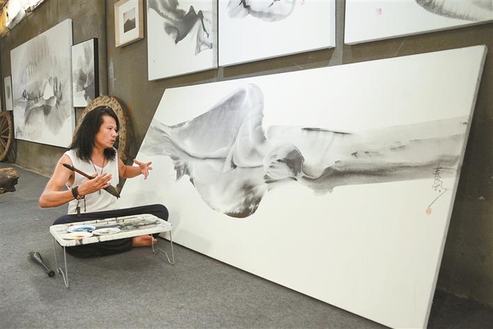 鄭泰均有個心愿,希望能在深圳找到一條河流,放一只大型竹筏,將宣紙鋪滿,在自由漂流中作畫。他曾在寶安至美術(shù)館開個展的時候留意過旁邊的一條河流,當時那條河還散發(fā)著難聞的氣味,但是經(jīng)過近些年深圳在“水治理”方面的大力投入,去年他再去美術(shù)館時,那條河河水已經(jīng)變得清澈,臭味難尋,正是他理想中的那條河流。他想,很快,這個心愿就能實現(xiàn)了。