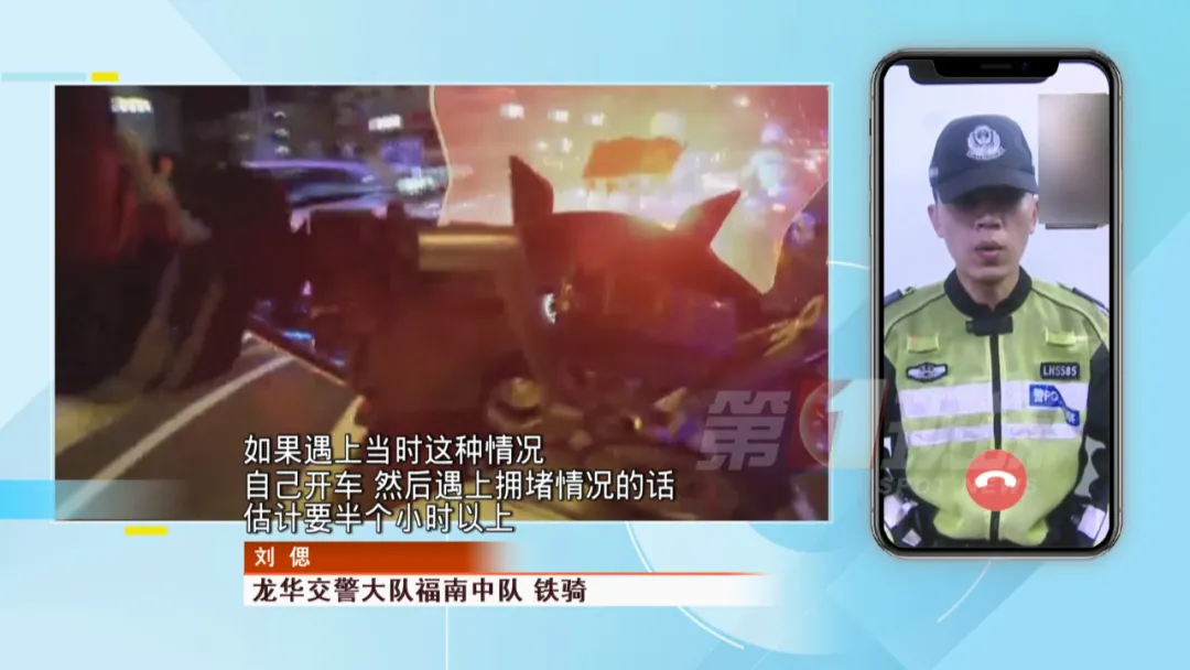 鐵騎一路沿著南坪快速往彩田路行駛,到達梅林關(guān)的位置后,跟福田交警匯合,采取前面開路后方護送的方式,花了15分鐘,就將病患護送到了市中醫(yī)院急診科。