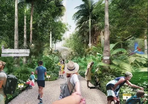 為生態(tài)森林公園,它模擬深圳的山地森林生境,營造大灣區(qū)山地森林的典型生境群落,在城市中心營造出自然教育與沉浸式學(xué)習(xí)的環(huán)境,設(shè)置生態(tài)教室、植物溫室等,形成戶外自然科普中心和自然主題為主的藝術(shù)花園。
