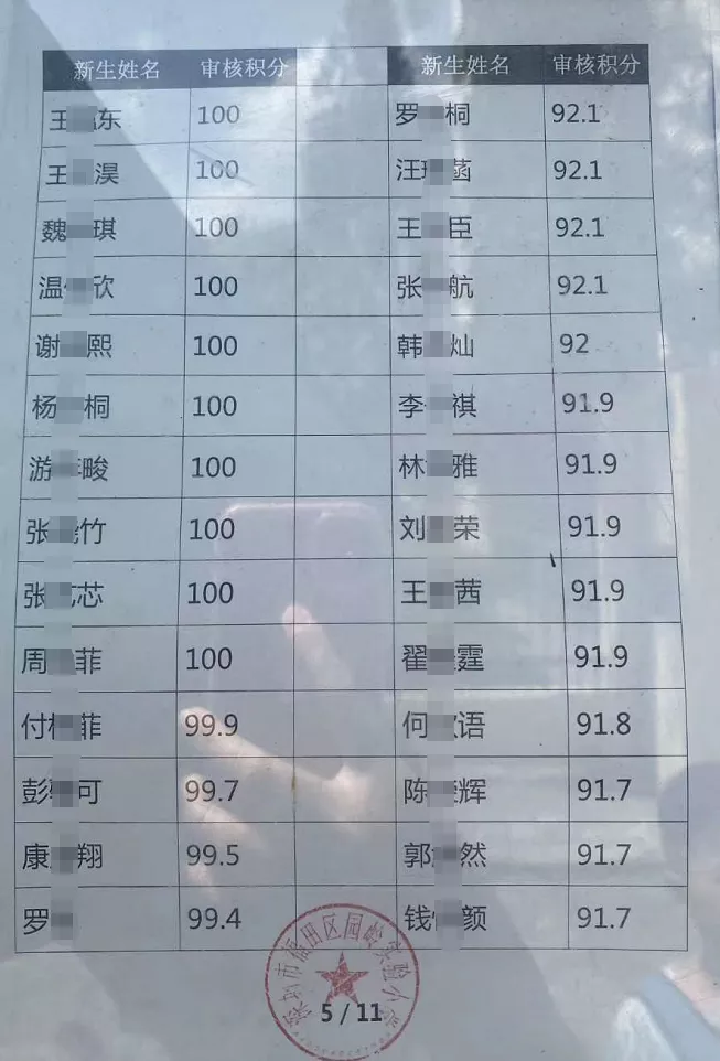 2020年福田區(qū)公辦小一新生錄取名單來了,部分學(xué)校最低錄取積分曝光