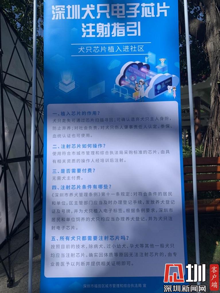 見(jiàn)圳客戶(hù)端·深圳新聞網(wǎng)2020年7月26日訊(記者 戰(zhàn)旗)7月26日上午,由深圳市城市管理和綜合執(zhí)法局主辦,福田區(qū)城管和綜合執(zhí)法局承辦的全市首場(chǎng)“文明養(yǎng)犬·芯連心”犬只芯片植入進(jìn)社區(qū)活動(dòng)在福田區(qū)景蜜社區(qū)公園開(kāi)展。記者現(xiàn)場(chǎng)獲悉,2020年年底前,深圳將實(shí)現(xiàn)犬只芯片管理全覆蓋,目前,全市各區(qū)都在逐步推進(jìn)犬只芯片植入工作,福田區(qū)、龍崗區(qū)、龍華區(qū)、羅湖區(qū)、大鵬新區(qū)已與100家寵物醫(yī)院正式簽訂了《犬只芯片植入委托服務(wù)》。