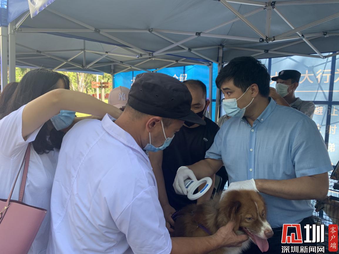 活動(dòng)現(xiàn)場(chǎng),不少養(yǎng)犬市民攜犬前來(lái)咨詢(xún)?nèi)恍酒⑸鋯?wèn)題,多個(gè)犬只在現(xiàn)場(chǎng)接受了芯片注射,犬只在注射芯片后無(wú)異常。城管部門(mén)執(zhí)法人員、文明養(yǎng)犬志愿者和寵物醫(yī)院醫(yī)生現(xiàn)場(chǎng)解答犬只芯片相關(guān)問(wèn)題,并現(xiàn)場(chǎng)為福田區(qū)辦理了養(yǎng)犬登記證的犬只植入電子芯片。