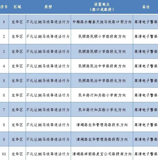 為減少和預(yù)防道路交通事故的發(fā)生,深圳交警于南山區(qū)新增1套機(jī)動(dòng)車超速高清電警設(shè)備,龍華區(qū)新增1套違反禁止標(biāo)線指示高清電警設(shè)備。