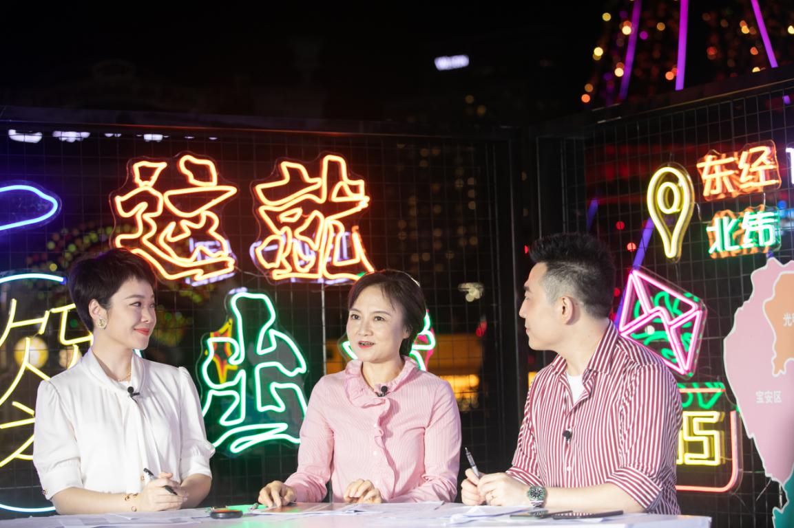 隨后,深圳市文化廣電旅游體育局副局長楊永群和深圳電視臺知名主持人張?zhí)煊?、馬一再一次同時出現(xiàn)在直播間,“打卡”華僑城景區(qū)片區(qū)新“夜態(tài)”,與觀眾一同體驗深圳的夏日歡樂夜生活。
