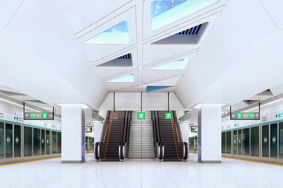 冬瓜嶺站地處福田區(qū)天威視訊附近,車站沿規(guī)劃福田彩田路南北向布置,車站為地下二層一島一側式站臺鋼筋混凝土箱形框架結構。車站共設出入口7個:A、B、C、D、3個物業(yè)出入口(E、F、G口)。
