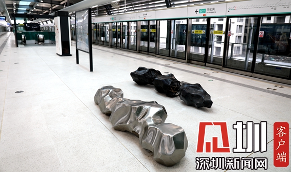 該站文化藝術(shù)品采用金屬鍛造而成,作品選用中國傳統(tǒng)經(jīng)典的“景石”造形,進(jìn)行解構(gòu)、重組的藝術(shù)處理。