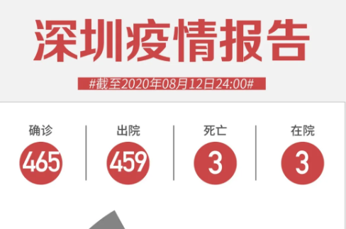 截至8月10日24時(shí),深圳市累計(jì)報(bào)告新冠肺炎確診病例465例。目前在院3例。