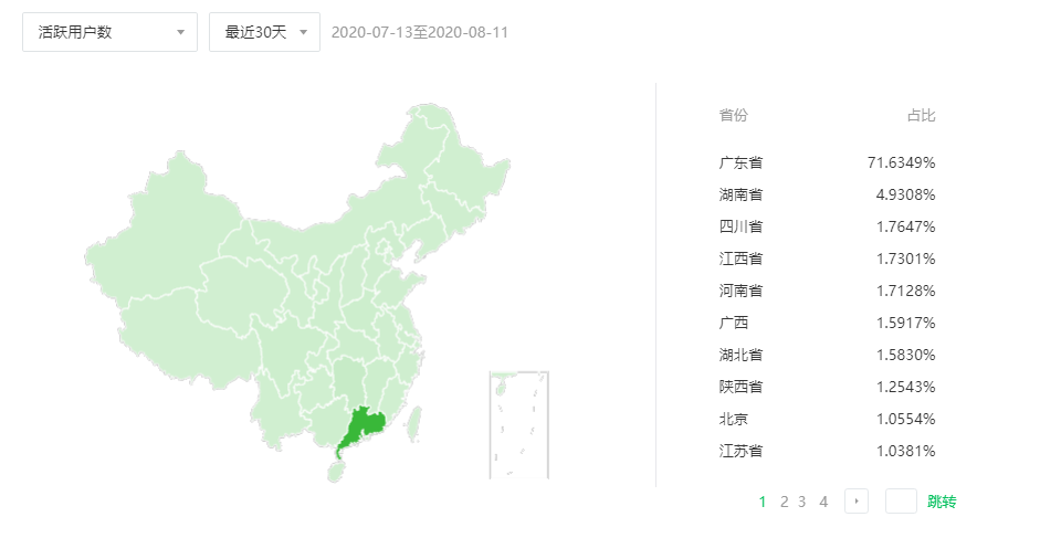 從“高考擇校助手”的用戶IP訪問(wèn)地址來(lái)看,來(lái)自廣東省的用戶數(shù)量最多,占了總訪問(wèn)量的71.63%。接下來(lái)的訪問(wèn)量排名靠前的依次是湖南、四川、江西、河南、廣西、湖北、北京、江蘇的用戶。
