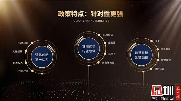 此外,新版政策主要針對(duì)羅湖重點(diǎn)發(fā)展的行業(yè)和領(lǐng)域,包括總部經(jīng)濟(jì)、金融業(yè)、商貿(mào)業(yè)、商務(wù)服務(wù)業(yè)、工業(yè)、文化創(chuàng)意、科技創(chuàng)新、建筑裝飾等行業(yè)產(chǎn)業(yè)鏈的關(guān)鍵環(huán)節(jié)給予支持,企業(yè)從落戶初創(chuàng)、到成長(zhǎng)壯大、到服務(wù)社會(huì),全生命周期都能申請(qǐng)資金扶持。