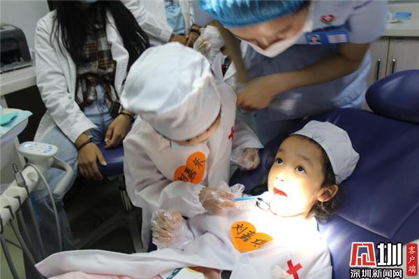 深圳新聞網(wǎng)訊(見圳客戶端、深圳新聞網(wǎng)記者 李慧 通訊員 楊紀(jì)歐)10月25日,羅湖區(qū)桂園街道老圍社區(qū)黨群服務(wù)中心組織社區(qū)青少年到醫(yī)院開展了一場社會實踐體驗活動,13位小朋友身穿白大褂,頭戴醫(yī)生帽,手拿口腔鏡,為“病人”檢查牙齒,當(dāng)了一回牙醫(yī),體驗了當(dāng)醫(yī)生的快樂,同時也感知到愛護(hù)牙齒的重要。3歲的劉嘉樂小朋友給姐姐看完牙齒后對媽媽說:“媽媽,姐姐有蛀牙。我以后也要好好刷牙。”