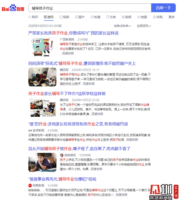中國青少年研究中心家庭教育首席專家孫云曉介紹,全國婦聯(lián)的一項調(diào)查顯示,40%以上的家長覺得無力輔導孩子作業(yè)。家長們對此有多愁苦?百度搜索“輔導孩子作業(yè)”的資訊,彈出16.2萬篇文章,大部分是關(guān)于家長各種吐槽。《作業(yè)把孩子難哭了,輔導作業(yè)把媽媽氣哭了,網(wǎng)友:太真實了》、《“爸爸事業(yè)再風光,輔導作業(yè)也爆缸!”》、《自從開始輔導孩子做作業(yè),嗓子啞了,血壓高了,吃肉都不香了》……一篇篇文章的標題,都是關(guān)于各位家長輔導孩子時的滿肚子苦水。