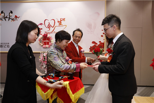 據(jù)悉,結婚登記頒證儀式是羅湖區(qū)民政局為了推崇簡約適度、文明向上的婚俗禮儀,倡導健康家庭倫理、婚姻文化、文明婚俗,培育好家風、傳承好家風,為結婚新人提供的免費服務。