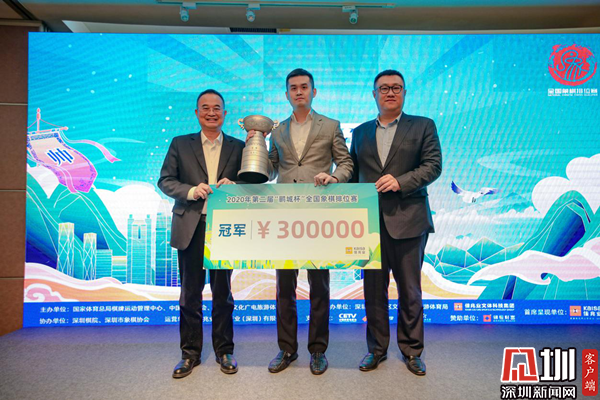 王志強(qiáng)與麥帆為王天一頒發(fā)今年“鵬城杯”獎(jiǎng)杯以及30萬元的冠軍獎(jiǎng)金。王天一表示,“鵬城杯”是國內(nèi)平均水平最高的賽事,經(jīng)過兩年成功辦賽,現(xiàn)在影響力越來越大,受到廣大棋手們和社會(huì)各方的重視,感謝深圳市文化廣電旅游體育局與佳兆業(yè)的鼎力支持。而“鵬城杯”也讓他在2020年末實(shí)現(xiàn)了一個(gè)小目標(biāo),今年唯一的一個(gè)個(gè)人賽冠軍,也實(shí)現(xiàn)了每年都能獲得一個(gè)冠軍的愿望。