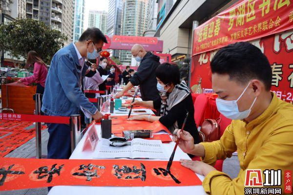 見(jiàn)圳客戶端·深圳新聞網(wǎng)2月3日訊(記者 劉晨)由羅湖區(qū)文化廣電旅游體育局、羅湖區(qū)文學(xué)藝術(shù)界聯(lián)合會(huì)主辦,羅湖區(qū)書法家協(xié)會(huì)承辦,國(guó)速地產(chǎn)協(xié)辦的“送福迎春”——羅湖區(qū)書法家書贈(zèng)春聯(lián)活動(dòng)2月1日在羅湖區(qū)寶安南路國(guó)速大廈南廣場(chǎng)舉行。