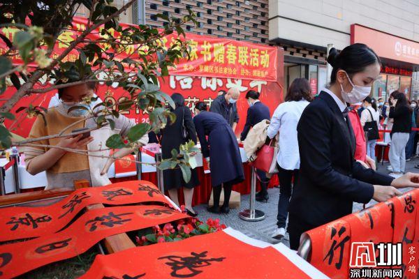據(jù)悉,羅湖區(qū)書法家協(xié)會(huì)于2021年春節(jié)前夕組織一批優(yōu)秀書法家深入社區(qū)基層,現(xiàn)場(chǎng)為群眾書贈(zèng)春聯(lián),書贈(zèng)福字,目前活動(dòng)先后在羅湖美術(shù)館南廣場(chǎng)、漁民村、羅湖區(qū)委等地舉辦多場(chǎng)。羅湖區(qū)書法家書贈(zèng)春聯(lián)活動(dòng)已連續(xù)舉辦了22年,深受群眾喜愛(ài),成為羅湖的一項(xiàng)品牌活動(dòng)。