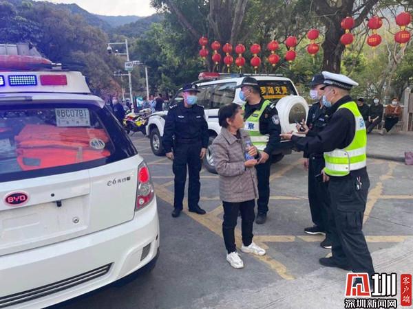 得知該情況后,現(xiàn)場隊(duì)員一方面穩(wěn)定老人家情緒,另一方面向其了解家人的基本情況。據(jù)老人描述,當(dāng)天她與女兒和女婿兩人來到梧桐山游玩,結(jié)果不小心走散。而老人身上并沒有攜帶相關(guān)證件和通訊工具,也無法提供家人具體聯(lián)系方式和證件號碼。由于當(dāng)時(shí)游人眾多,為確保老人安全,盡快幫助其找回走散的家人,現(xiàn)場隊(duì)員立即與交警隊(duì)指揮中心反映情況,并聯(lián)系東湖派出所協(xié)同開展調(diào)查。在執(zhí)勤交警與派出所警力的緊急幫助下,老人懸著的心也總算放下,并對隊(duì)員的熱心幫助表示衷心感謝。