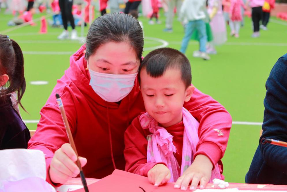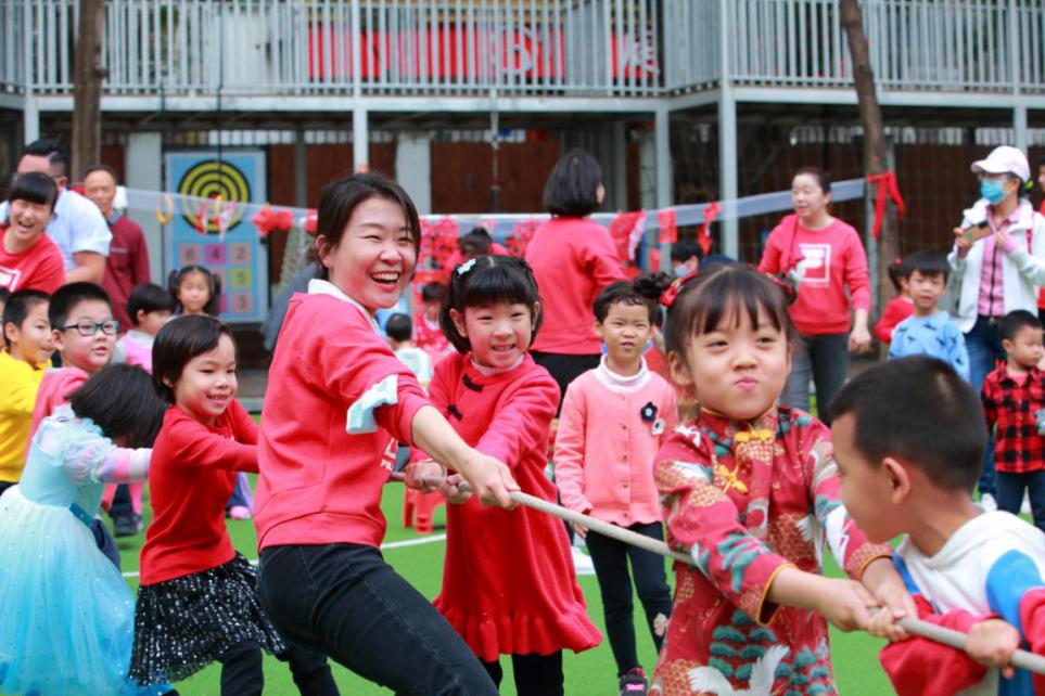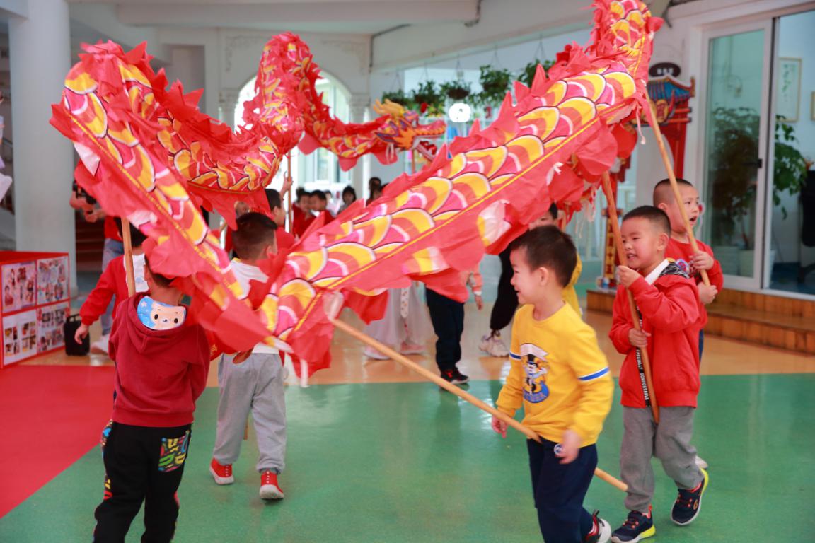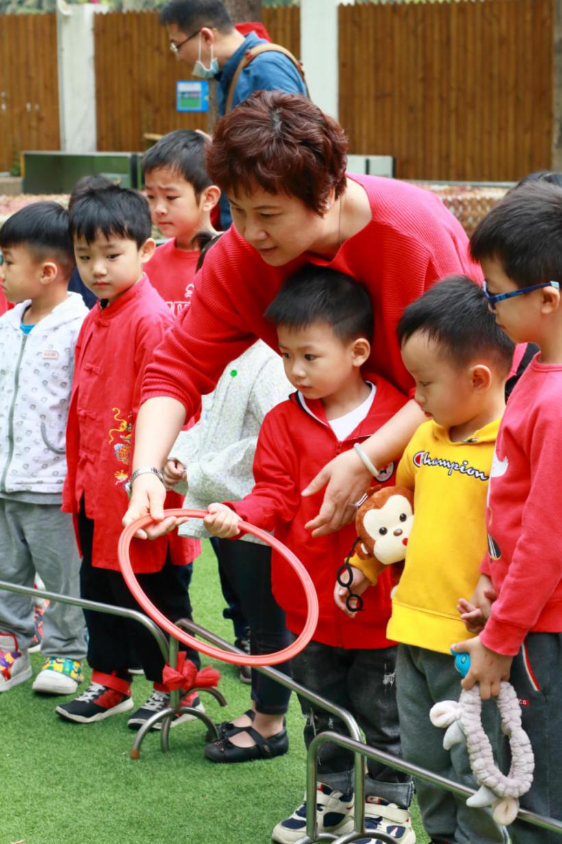 “加油!加油!”家長(zhǎng)與孩子一起參加的拔河比賽讓全場(chǎng)氣氛沸騰,套圈、貼鼻子等活動(dòng),更是讓大人們體驗(yàn)了一把兒時(shí)的歡樂。孩子們身系紅紅的綢帶、揮舞著漂亮的手絹,伴隨鑼鼓、嗩吶、镲奏出的動(dòng)感曲調(diào)扭著秧歌,更是將現(xiàn)場(chǎng)氛圍推向了高潮。