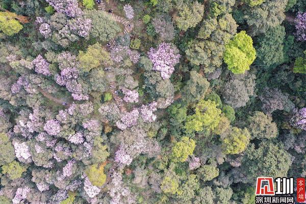 梧桐山的毛棉杜鵑集中分布于400m以上海拔山坡,最佳觀賞期主要在每年3月中旬左右,毛棉杜鵑花綻放的季節(jié),繁花似錦,燦若云霞,蔚為壯觀。每年花開季節(jié)都會(huì)引來廣大游客前來觀賞。