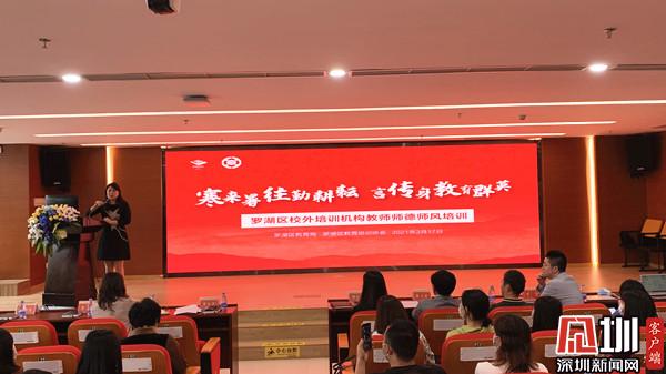 見(jiàn)圳客戶端·深圳新聞網(wǎng)3月17日訊(記者 郭含笑)為進(jìn)一步推進(jìn)校外培訓(xùn)機(jī)構(gòu)專項(xiàng)治理,加強(qiáng)學(xué)校師德師風(fēng)建設(shè),3月17日下午,深圳市羅湖區(qū)教育局開(kāi)展校外培訓(xùn)機(jī)構(gòu)教師師德師風(fēng)培訓(xùn)會(huì)議與消防安全培訓(xùn)。羅湖區(qū)教育局工作人員、78所培訓(xùn)機(jī)構(gòu)法人、負(fù)責(zé)人及教師代表參加了此次會(huì)議。