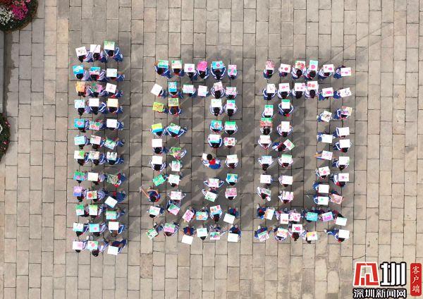 繪畫結(jié)束后,同學(xué)們興奮地向鏡頭展示他們的畫作,一幅幅精心繪就的畫作,給杜鵑花海增添了更多充滿創(chuàng)意的色彩。隨后,同學(xué)們?cè)趶V場(chǎng)擺出“100”字樣,向中國(guó)共產(chǎn)黨建黨100周年致敬。