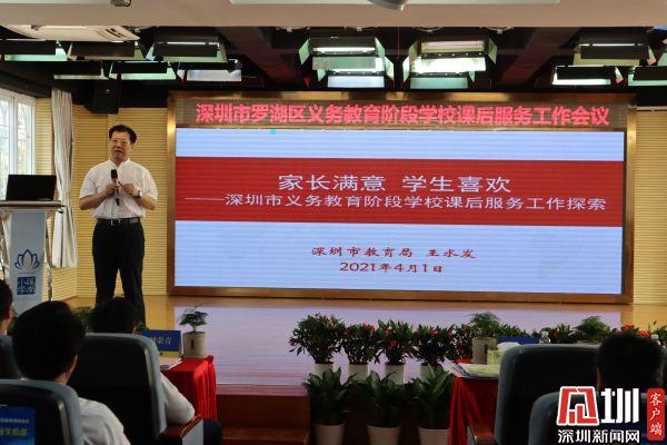 王水發(fā)以“家長滿意,學(xué)生喜歡”為主題發(fā)表看法,梳理工作背景,指出發(fā)展課后教育工作的背景和初心——四個有利于:利于解決家長四點半就要接送孩子的困難、有利于利用公共資源,發(fā)展學(xué)生的興趣與特長、有利于探索實現(xiàn)學(xué)生在學(xué)校完成作業(yè)、有利于提高家長教育獲得感。以做好做實為要求,鼓勵羅湖區(qū)辦好這件學(xué)校和家長都關(guān)心關(guān)注的工作。