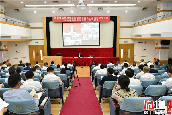 見圳客戶端·深圳新聞網(wǎng)4月8日訊(記者 劉嘉敏/文 見習(xí)記者 邱婕/圖)4月7日,羅湖區(qū)委理論學(xué)習(xí)中心組暨全區(qū)副局、正處級領(lǐng)導(dǎo)干部黨史學(xué)習(xí)教育專題研討班開班。此次研討班的主要任務(wù)是,以習(xí)近平新時代中國特色社會主義思想為指導(dǎo),深入學(xué)習(xí)貫徹習(xí)近平總書記在黨史學(xué)習(xí)教育動員大會上的重要講話精神,認真落實黨中央決策部署和省委、市委工作安排,高標準、高質(zhì)量推進黨史學(xué)習(xí)教育走深走實,進一步統(tǒng)一思想、提高認識,從黨的百年偉大奮斗歷程中汲取前進的智慧和力量,高質(zhì)量推進“灣區(qū)樞紐、萬象羅湖”建設(shè),以優(yōu)異成績迎接建黨100周年。區(qū)委書記羅育德作動員講話暨主題報告,區(qū)委副書記、區(qū)長劉智勇主持開班式。