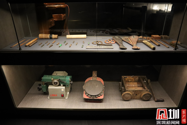 博物館內分為五個常設展區(qū)及一個專題展區(qū),“自然之寶”“物配之美”“設計之光”“深圳之路”“灣區(qū)之夢”。其中“深圳之路”展區(qū)則是以老照片走廊與立體沙盤投影的形式回溯深圳珠寶發(fā)展的歷史,展區(qū)內還有舊時期制作珠寶的工具展示以及現代3D打印、數控機床、激光精雕等現代化高科技加工技術設備的展示。