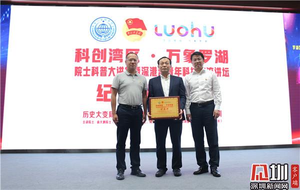 活動中,姚波和戴澤樺代表活動主辦單位向俞大鵬贈送了“科創(chuàng)灣區(qū) ?萬象羅湖|院士大講堂暨深港澳青年科技交流講壇”紀(jì)念牌,衷心感謝俞院士在百忙中到羅湖傳授寶貴知識和對羅湖區(qū)科普工作的大力支持。