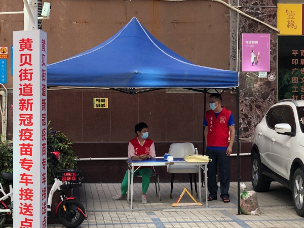 炎炎烈日,為貼心服務(wù)群眾,黃貝街道設(shè)立了接種新冠疫苗專車接送點(diǎn)。接送點(diǎn)的義工告訴記者,在戶外工作特別消耗水,一個(gè)上午就喝掉四五瓶飲用水,雖然準(zhǔn)備了防曬的雨棚,但路上的熱空氣卻躲不掉,一會(huì)兒下來也是大汗淋漓,不過能為群眾服務(wù),盡快建立全民免疫陣線,這份守候很值得。